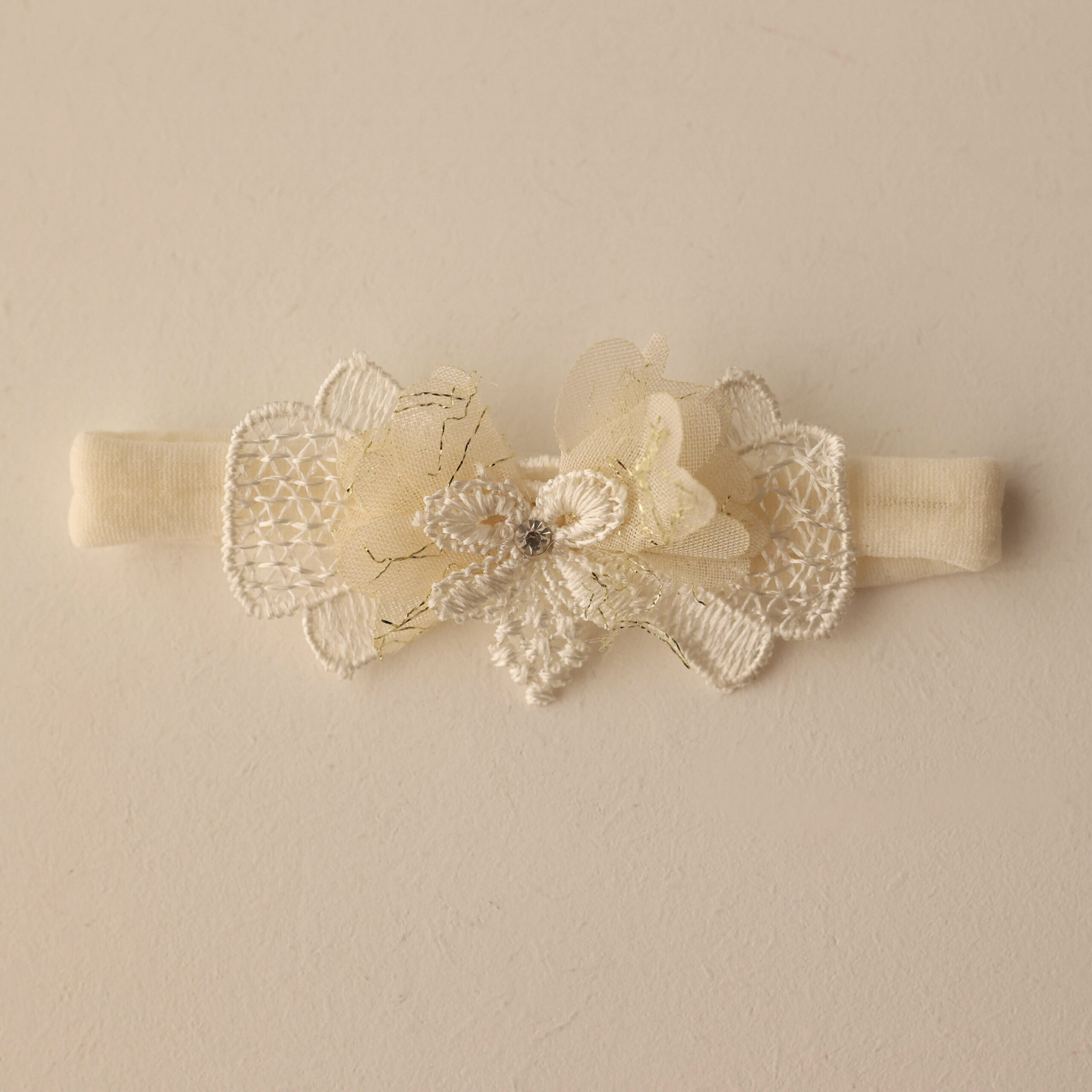 Os laçinhos são feitos com renda e a faixinha é de meia de seda de exelente qualidade quando você estica ela já volta para o lugar normalmente, ela também não aperta a cabecinha do bebê, produção 100% artesanal.
