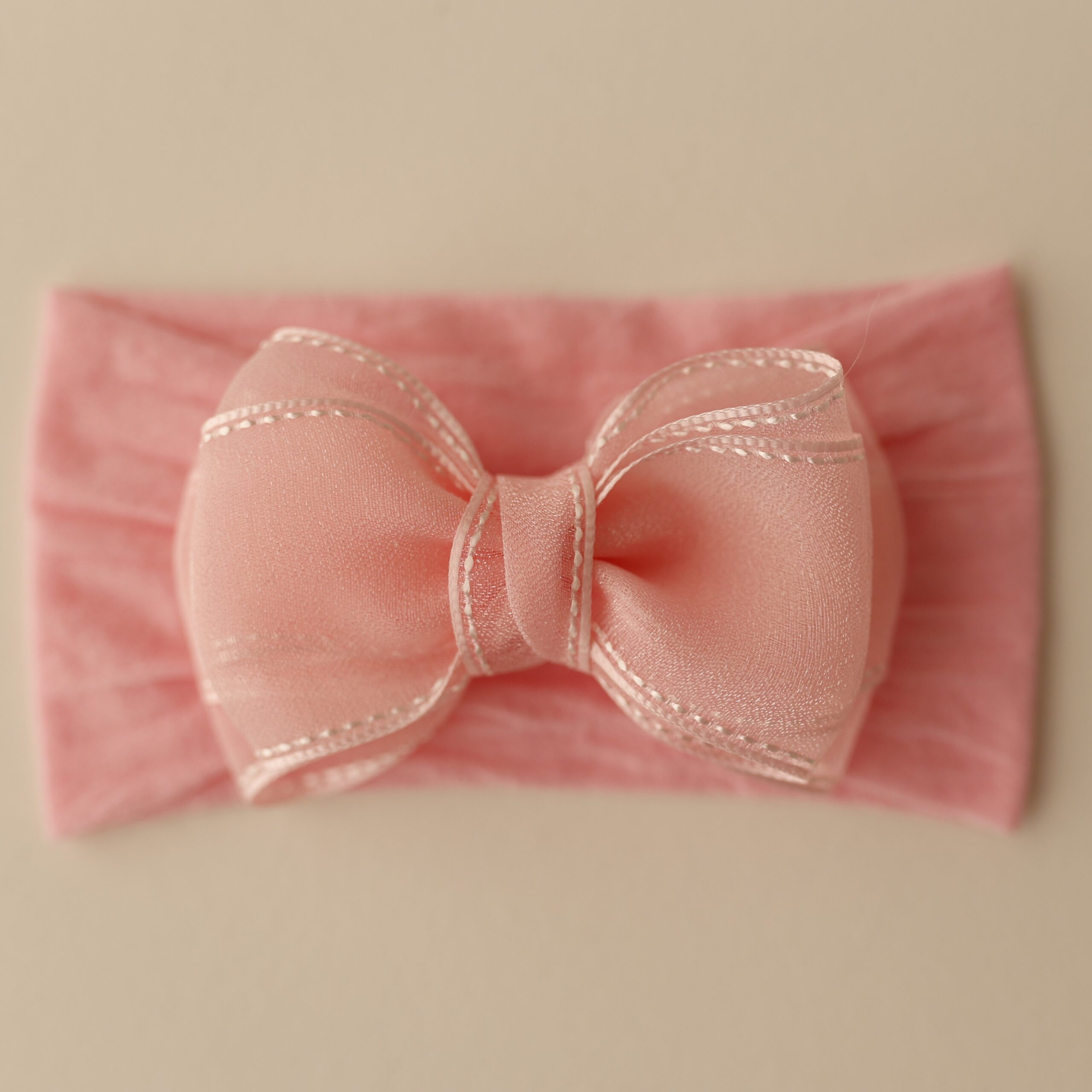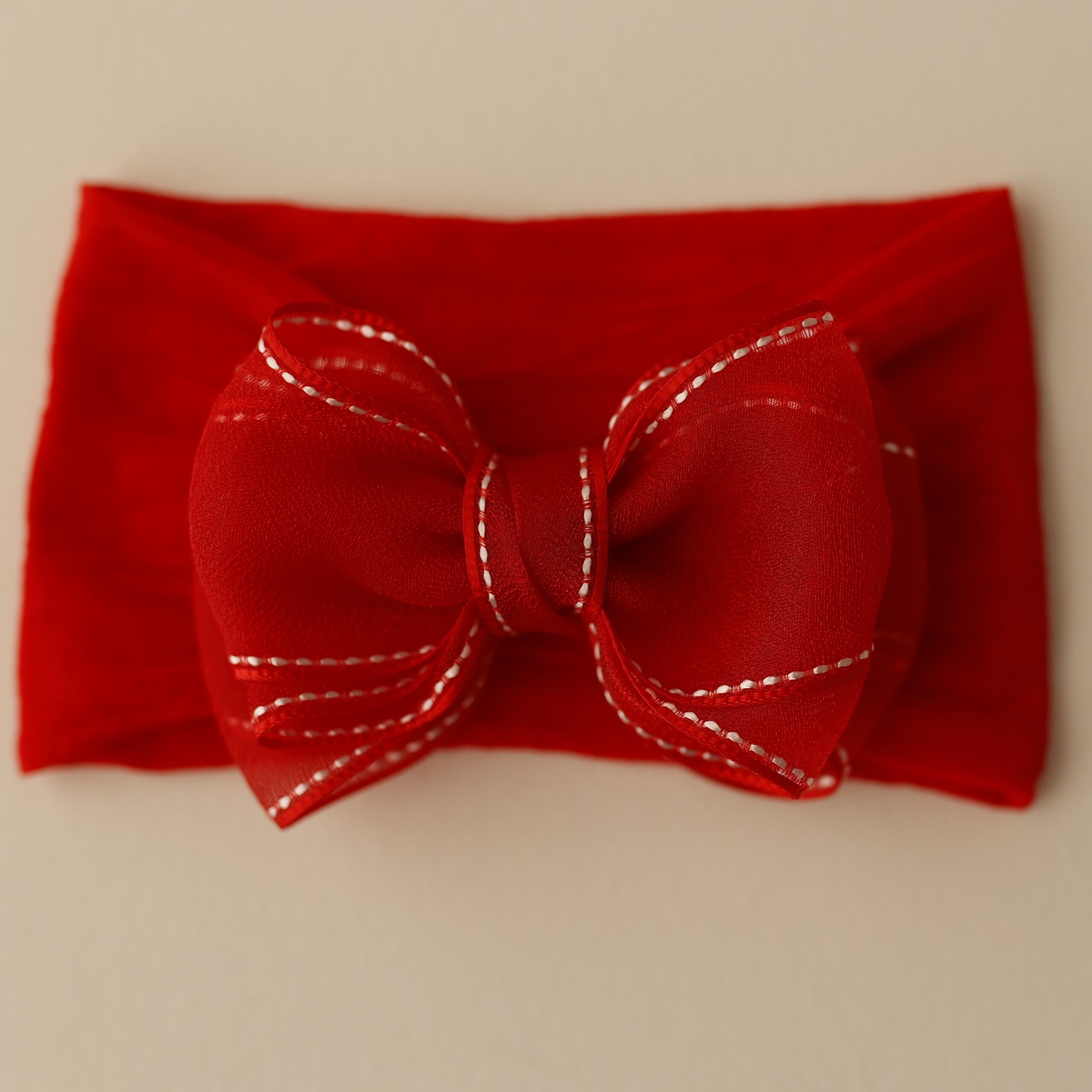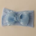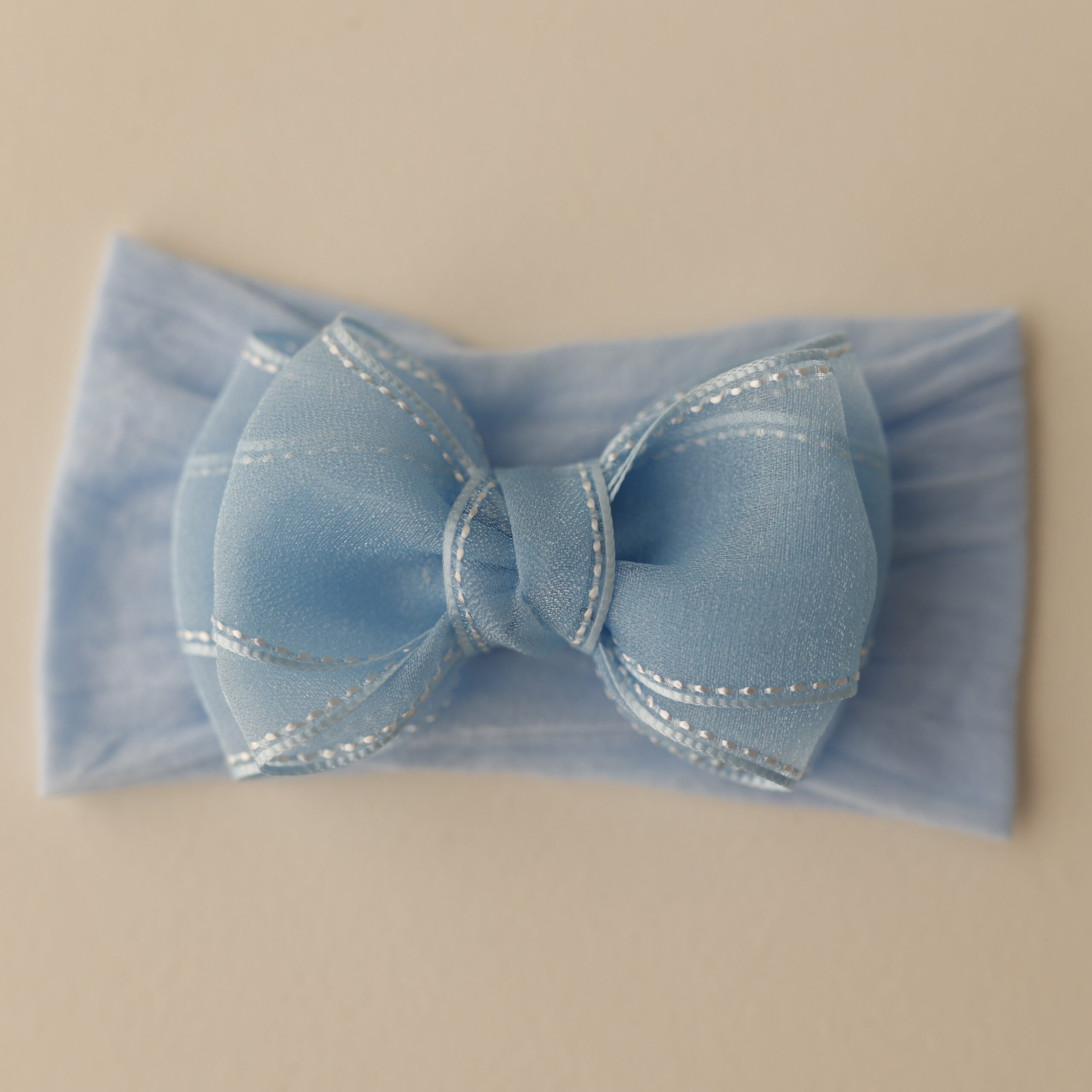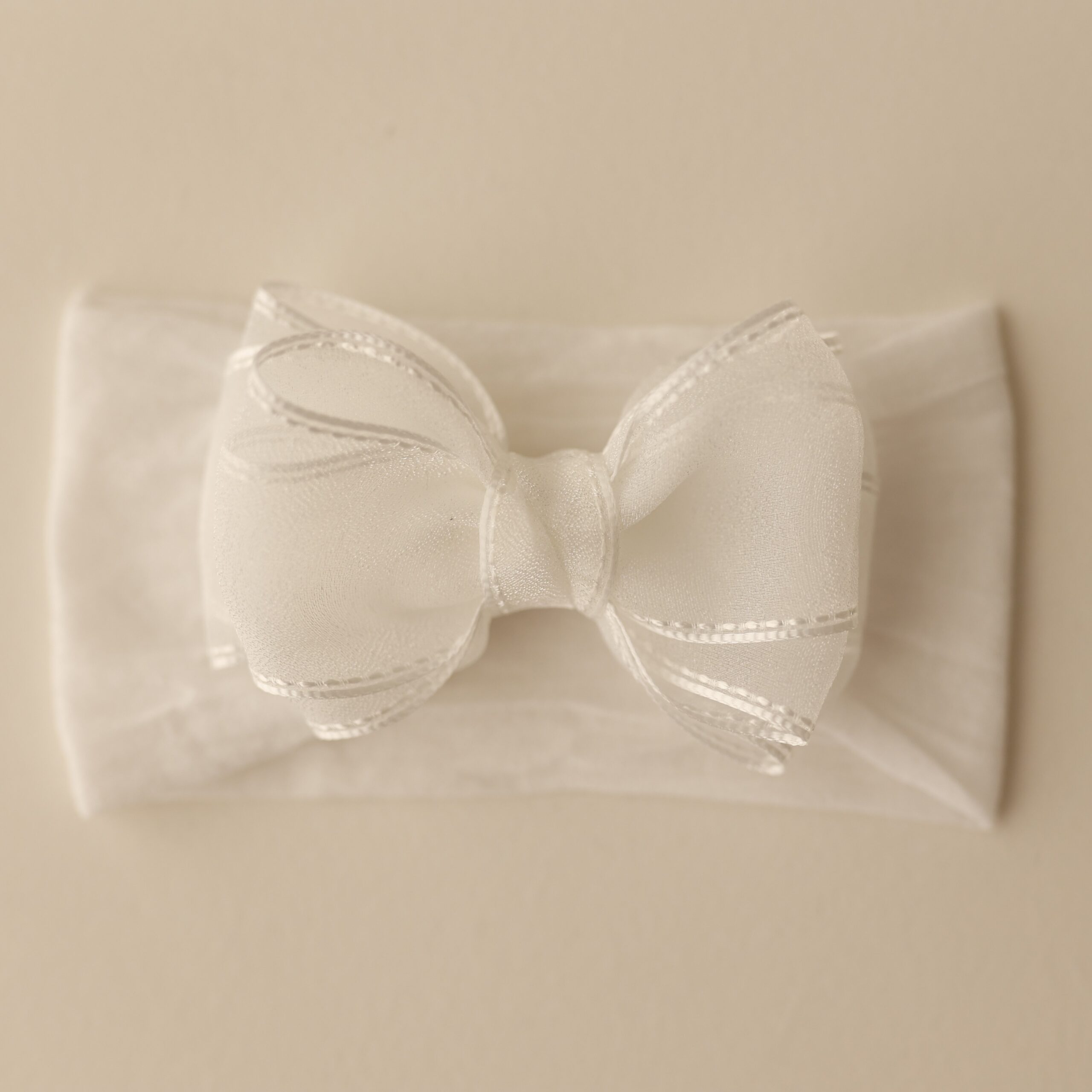O laço é feito em organza, um tecido leve, elegante e delicado. Cada peça é produzida de forma 100% artesanal, com atenção especial aos detalhes.